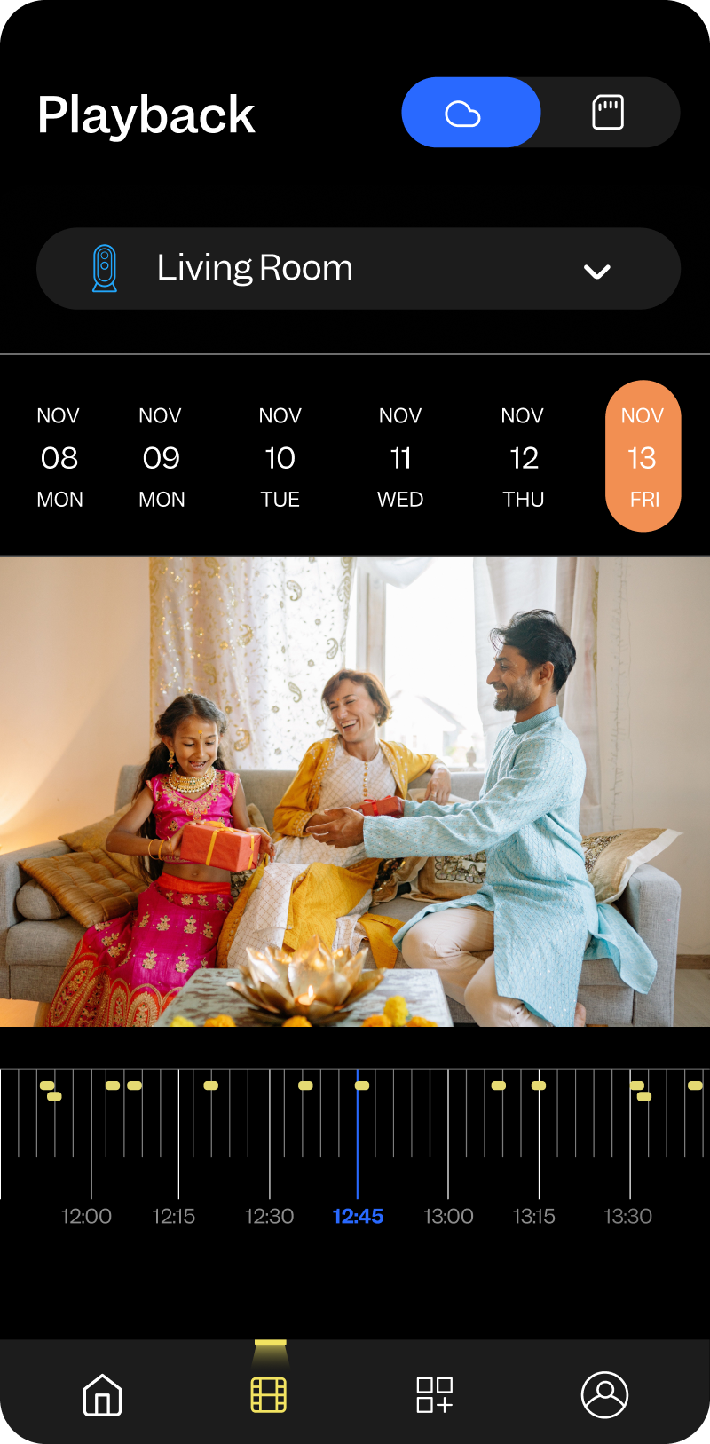 Sense 1 let's you playback video events detected for upto 7 days with cloud storage.