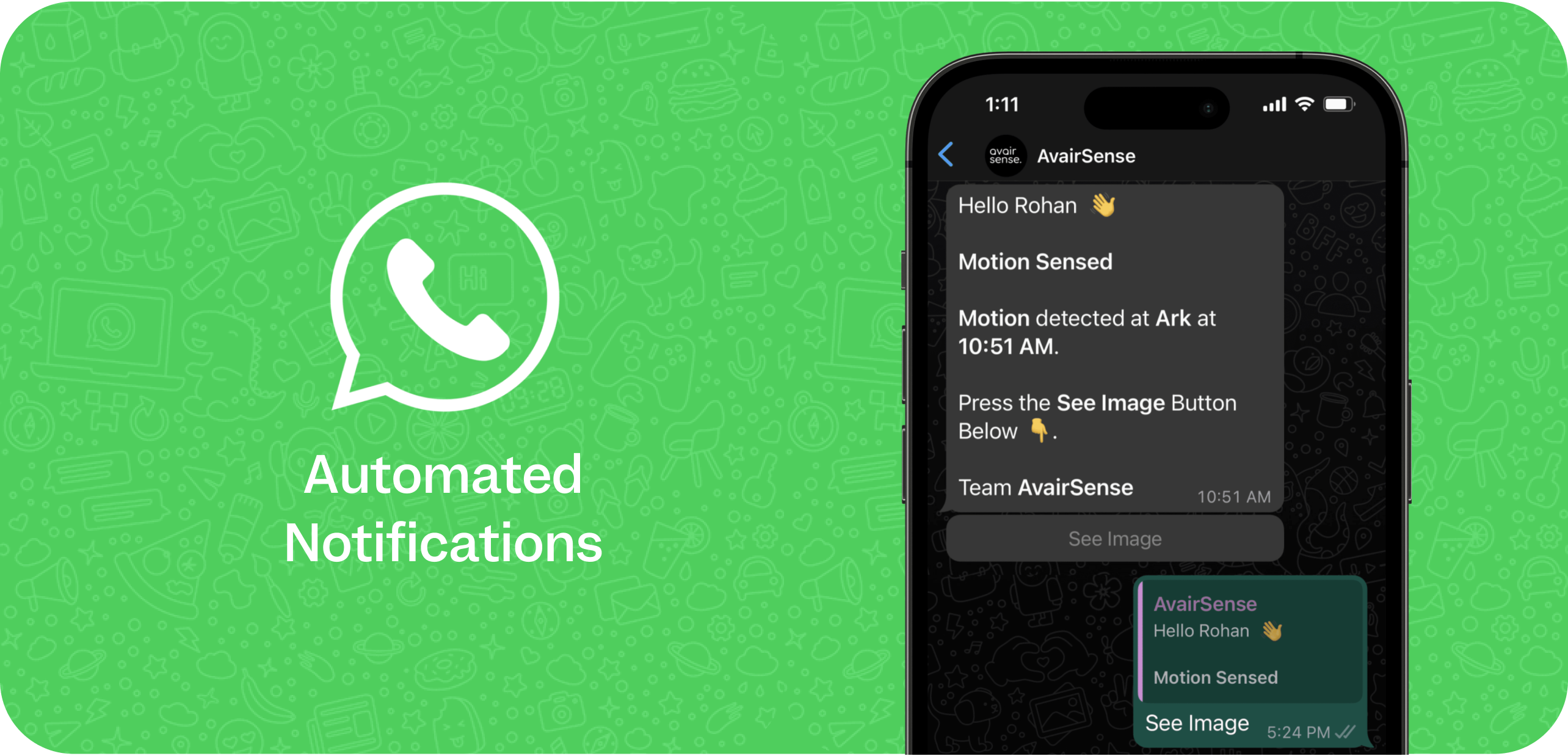 We know it's rare that you'd want to see footage when nothing happened. You want to make your home camera a part of your daily life. Get notified on all motion triggers or any event on your favourite messaging app.